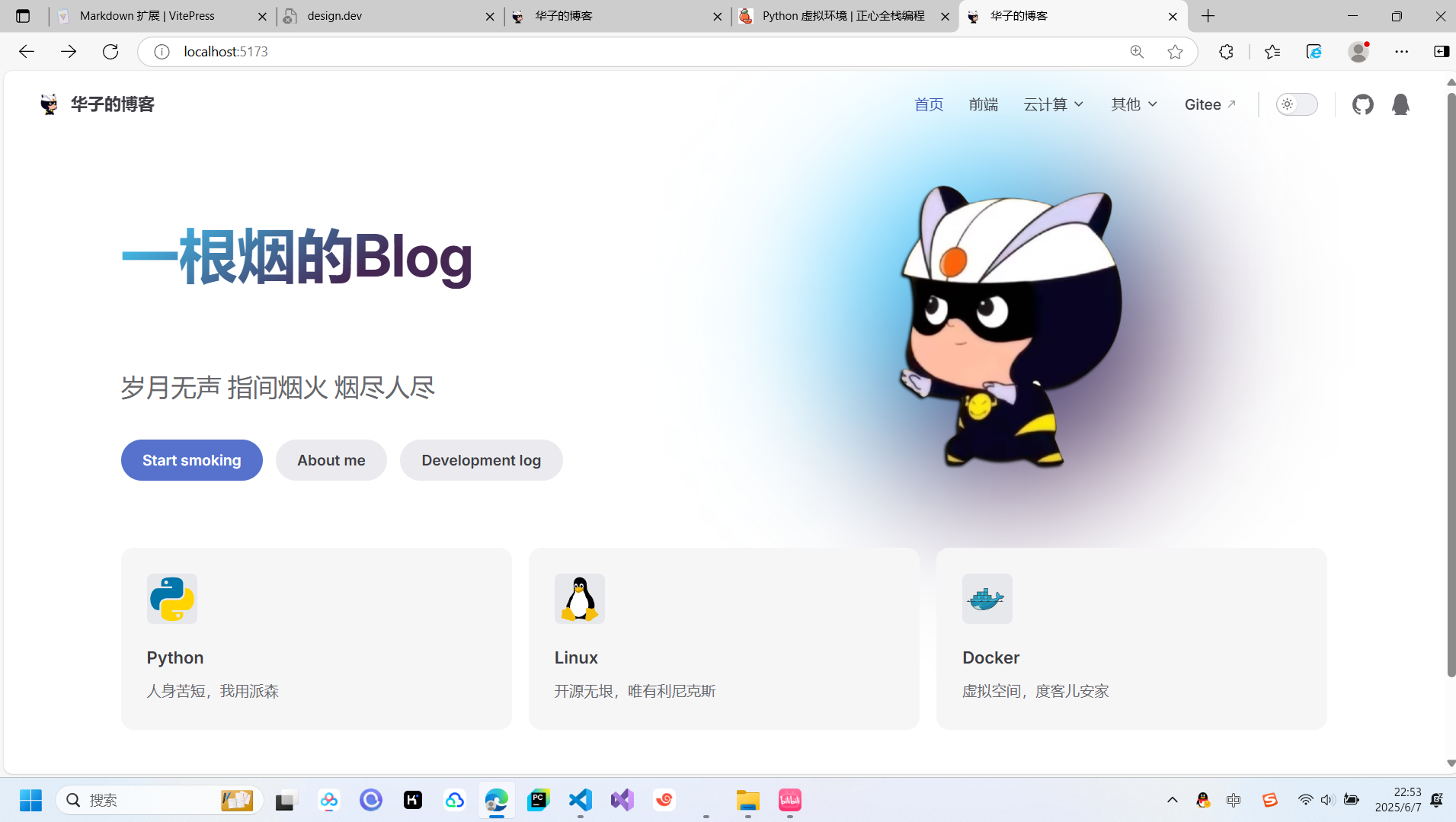 基本上是前端已经完成,下面就是后端了,其实也不是后端,只是把“后端”放到了前端,没有了动态响应那速度是真的快。emmm,接下来的打算学一下markdown的语法 美化一下网页 学一下自动化部署网站 还有一个是写个python程序完全实现自动化